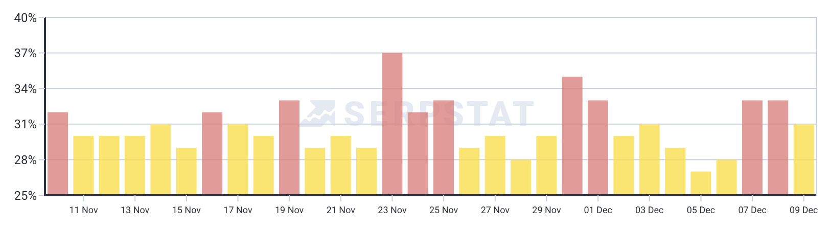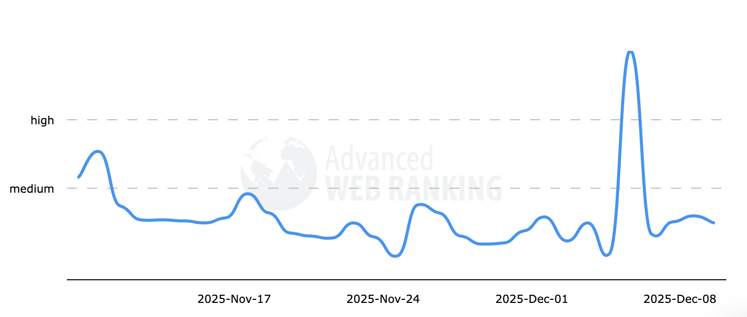 Ранжирование в Google в последнее время довольно сильно колеблется. Мы заметили изменения 7 и 8 декабря, 3 и 4 декабря, непосредственно перед Днём благодарения 20 ноября, 12 ноября, примерно 8 ноября (который мы назвали обновлением ‘Movember’) и после обновления ‘Halloween’. Мы также наблюдали волатильность между 15 и 17 октября и снова 7 и 8 октября.