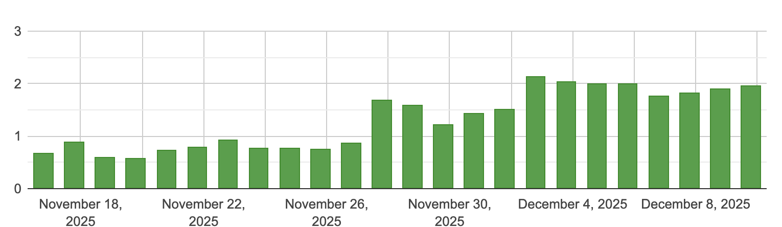 Забираю свои слова назад, трафик снова упал в обеденное время сегодня, так что сегодня снова плохой день… Я, вероятно, могу списать декабрь, доход новостного сайта даже не составляет 10 евро, RPM уже роет яму в подвале. Я медленно начинаю надеяться на скорое появление основного обновления, которое, надеюсь, принесет некоторые улучшения.