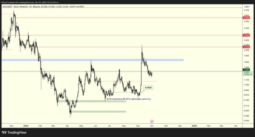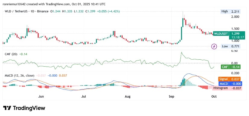 На момент написания, WLD торгуется около $1.31, увеличившись на 6% за день — краткосрочный «отскок», который так же надежен, как обещания политика. Тем не менее, зона сопротивления в $1.50 остается «барьером», который продолжает отклонять бычьи атаки. Барьер настолько упрямый, что это практически стена из кирпичей. 🧱